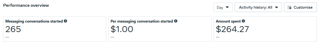 The messaging-based approach worked especially well for roof lining, as most leads preferred to inquire quickly via DM rather than browse a website. These 728 customer actions included both direct jobs and long-term client bookings, driving revenue and brand awareness without a website or complex funnel.